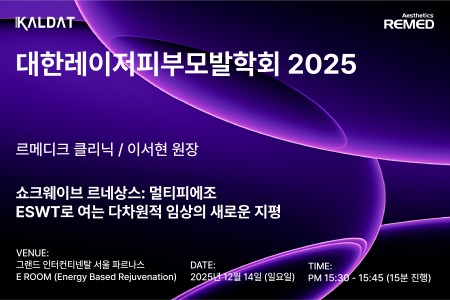 논써멀 에너지 충격파 재생 리프팅, 대한레이저피부모발학회에서 레프톤 강연이 펼쳐집니다.일시 : 2025.12.14 (일요일) 장소 : 그랜드 인터컨티넨탈 서울 파르나스 (서울 강남구 테헤란로 521) E ROOM (Energy Based Rejuvenation…